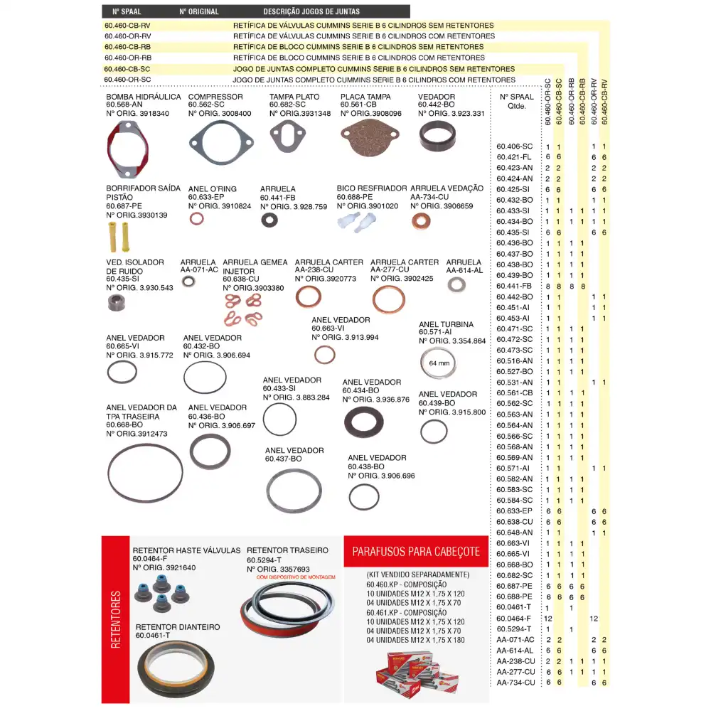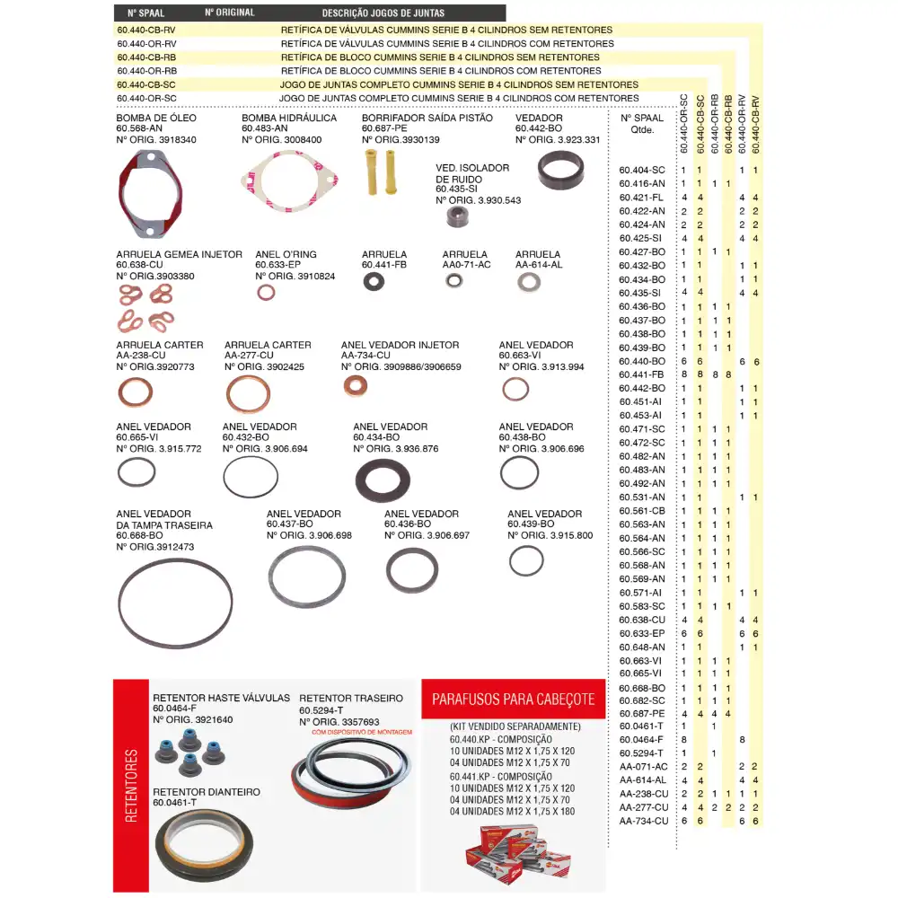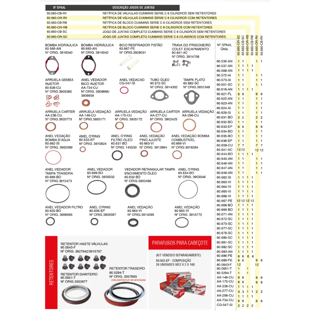 JOGO JUNTA RETIF VALVULA MB904 4CILINDRO 47904ORRVTD CABINE