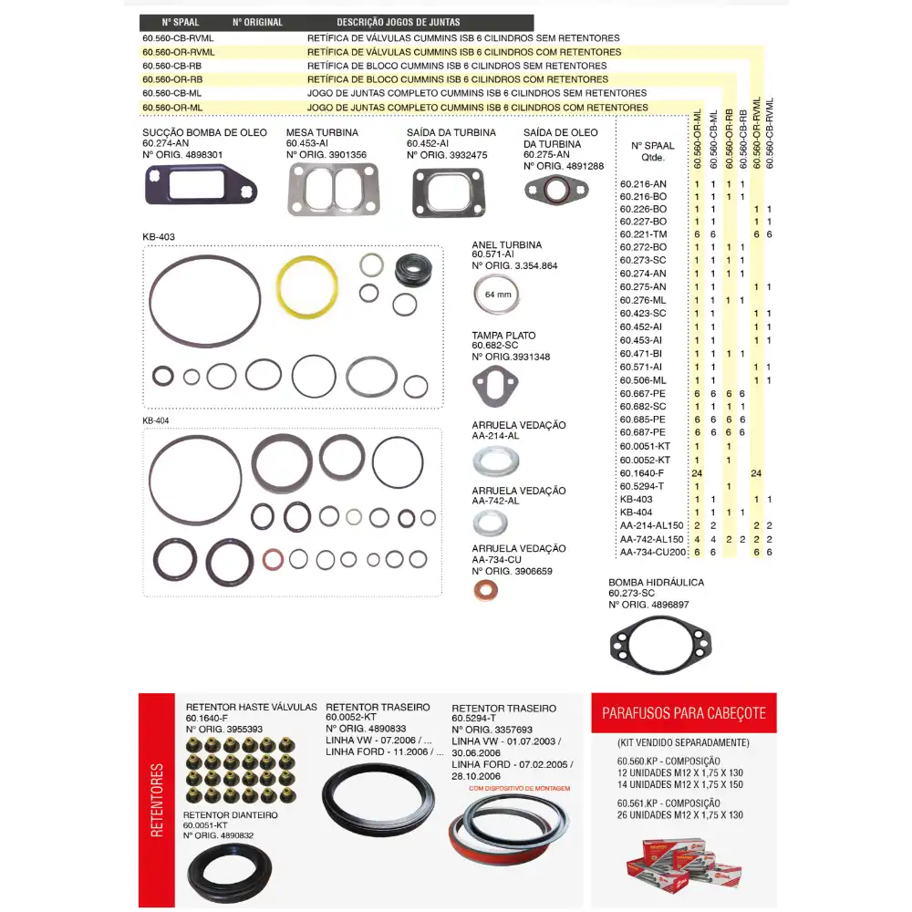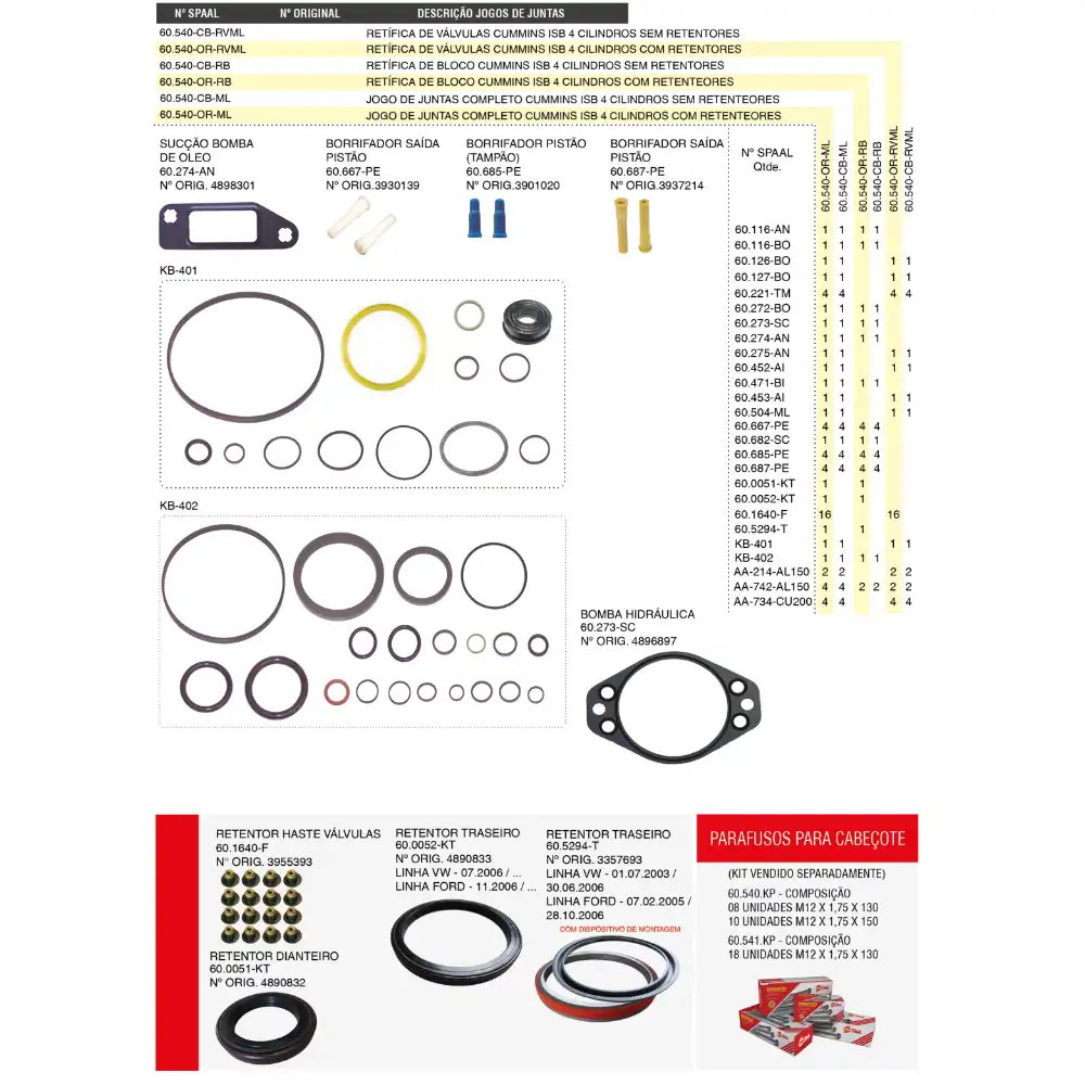 JUNTA MOTOR CUMMINS COMPLETO ISB 3.9 EL 60540ORML