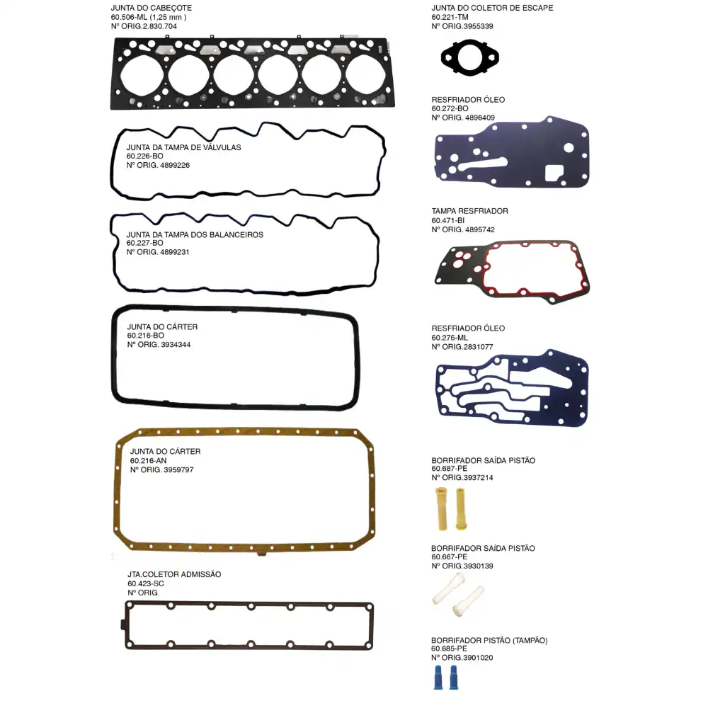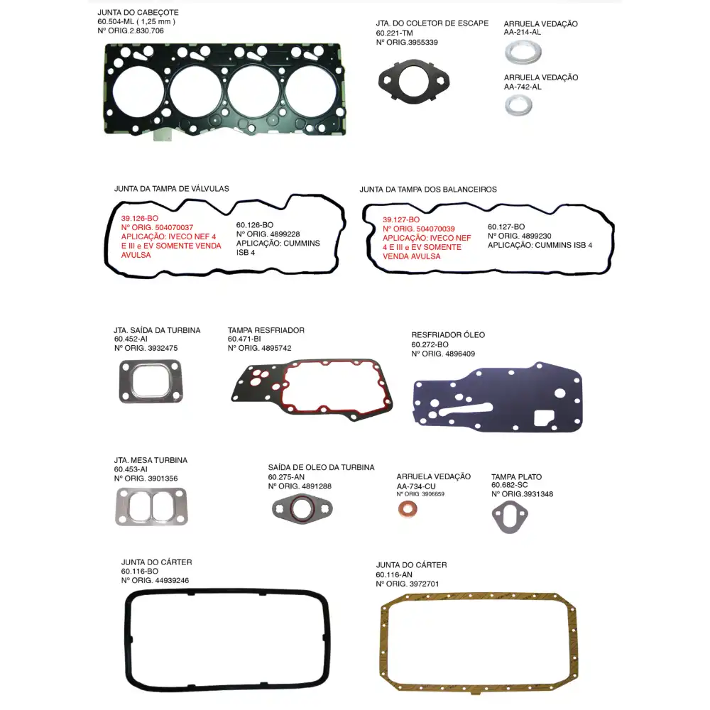 JUNTA MOTOR CUMMINS 4C 3.9 ISB SUPERIOR 60540ORRVML SEM RET/