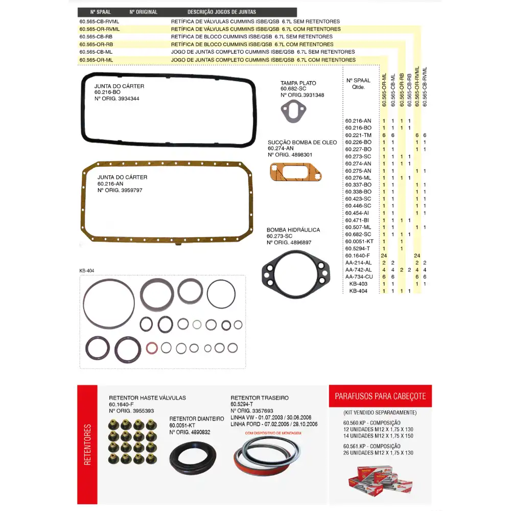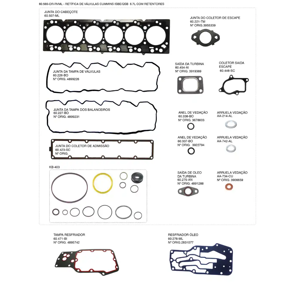 JUNTA COMPLETA JOGO MOTOR CUMMINS ISBE 6.7 60565ORMLC/RETENT