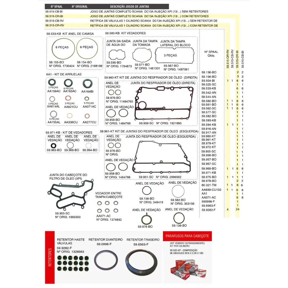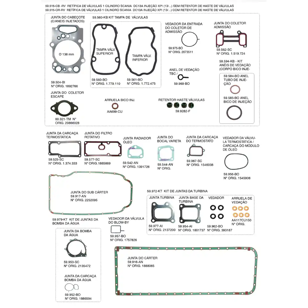 JOGO JUNTAS MOTOR SCANIA DCI13 CPL C/RETENTOR 59515ORB