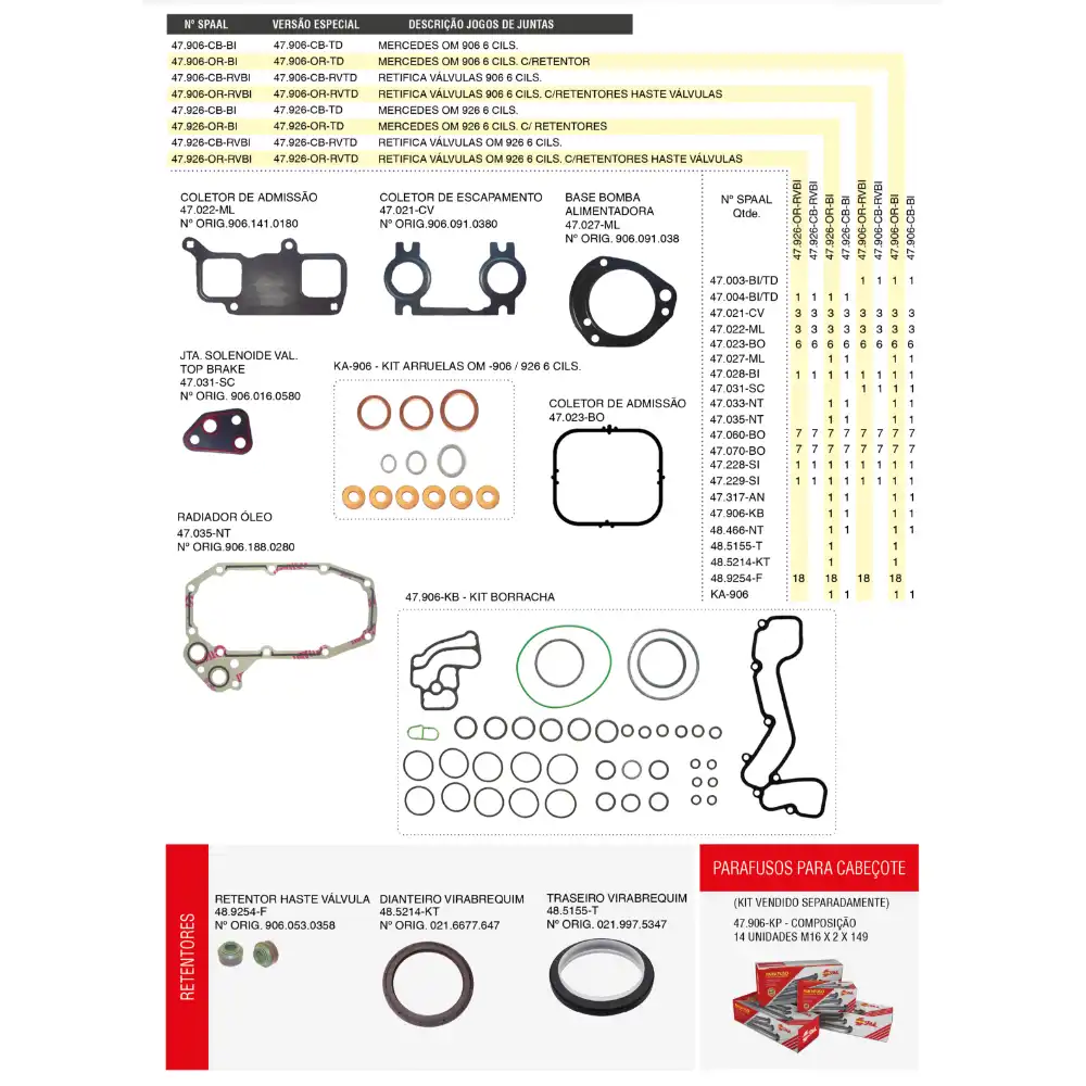JOGO JUNTA RETIF VALVULA MB904 4CILINDRO 47904ORRVTD CABINE