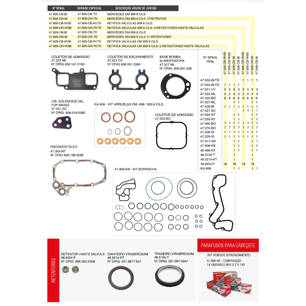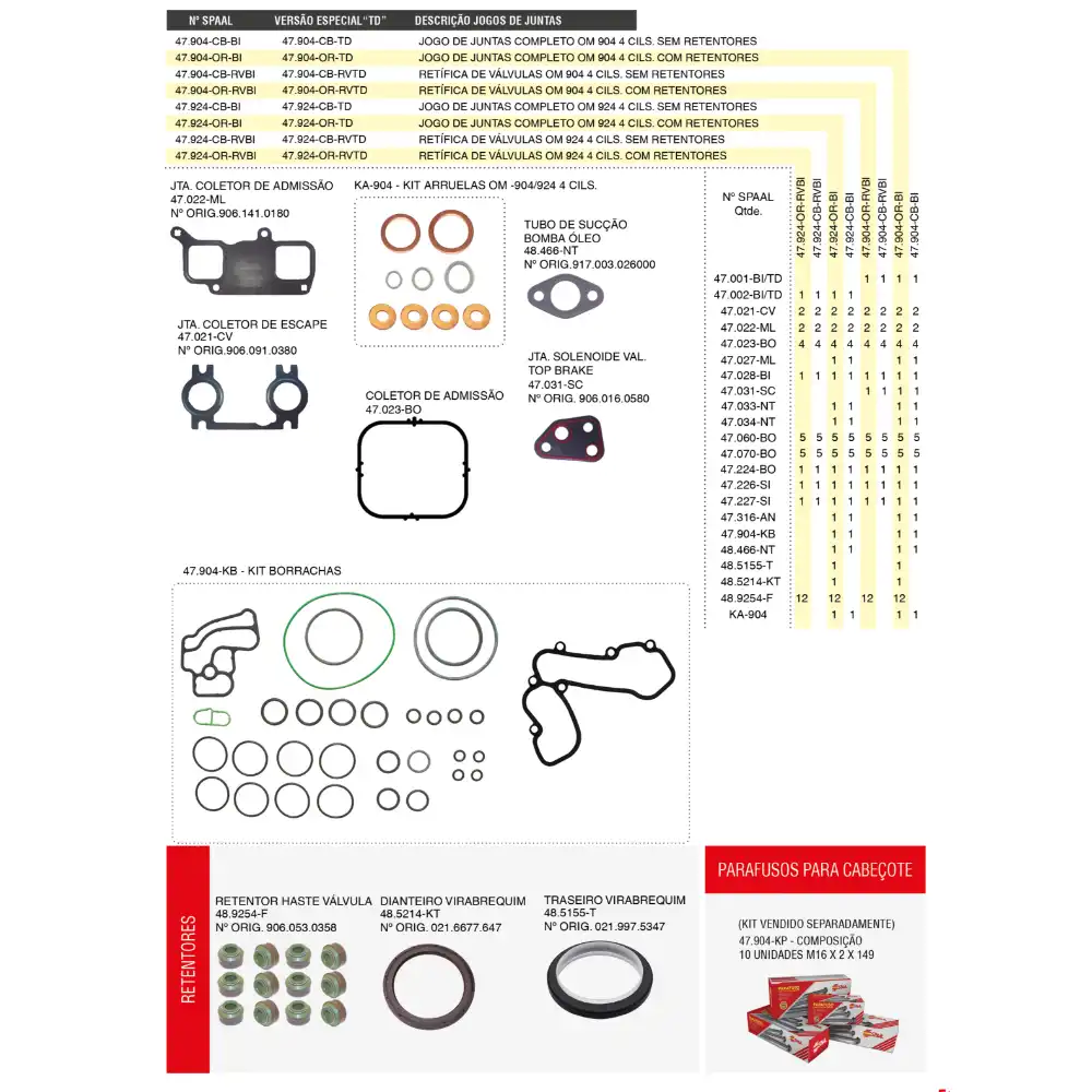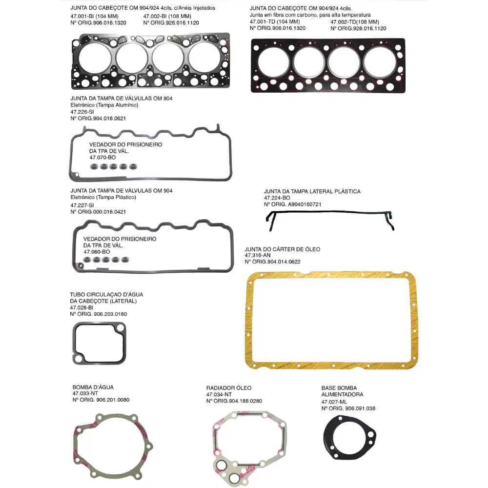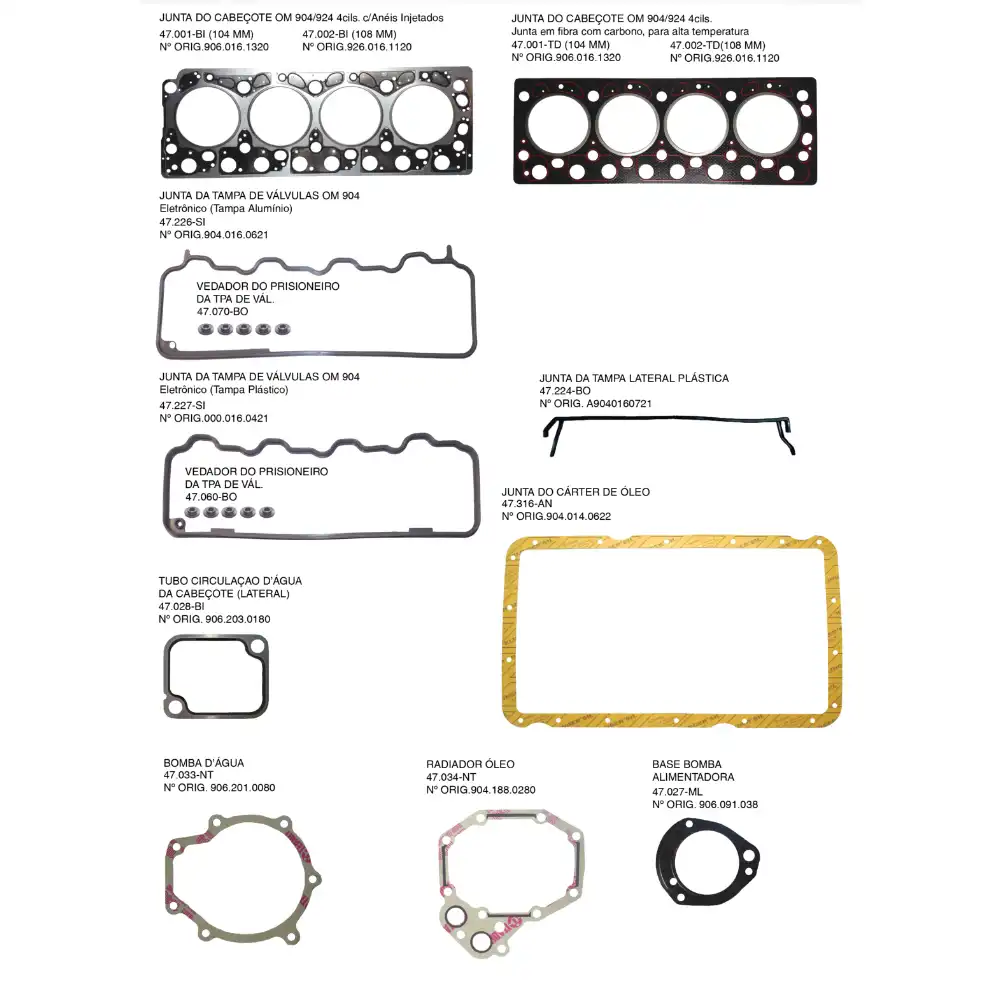 JOGO JUNTA RETIF VALVULA MB904 4CILINDRO 47904ORRVTD CABINE